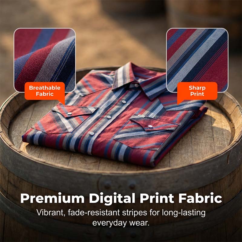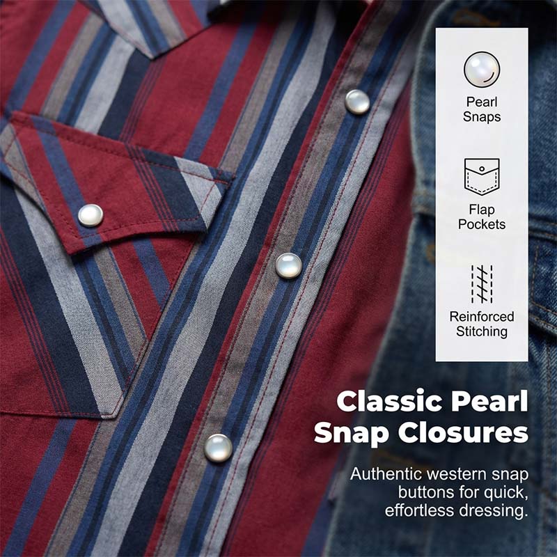 CAPSE CLASICE DE TIP PERLĂ - Concepută cu capse tradiționale de tip perlă și buzunare la piept cu două clapete, această cămașă oferă atât o estetică western autentică, cât și o funcționalitate practică și ușor de utilizat pentru purtarea de zi cu zi.