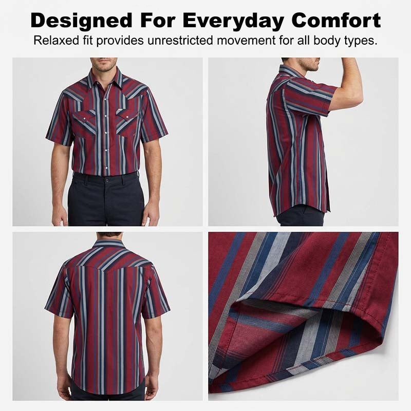 Cămașă western cu mâneci scurte și dungi, cu nasturi, pentru bărbați