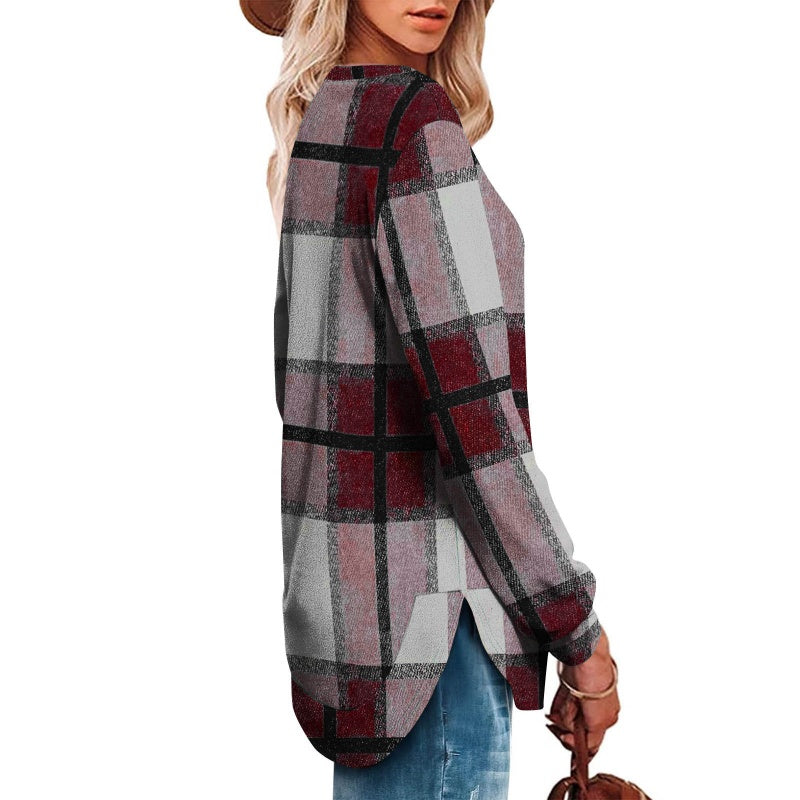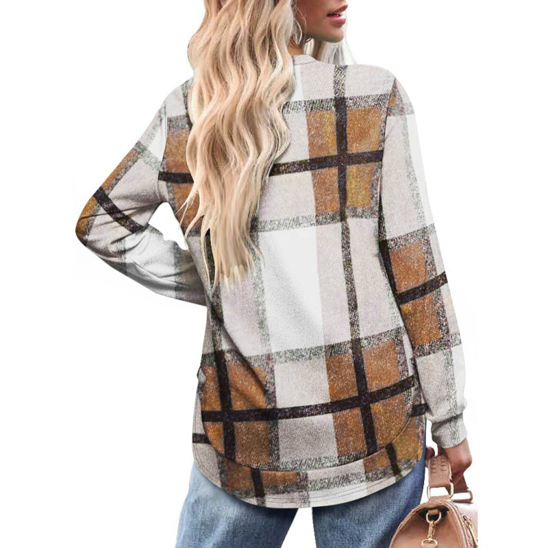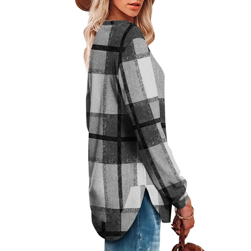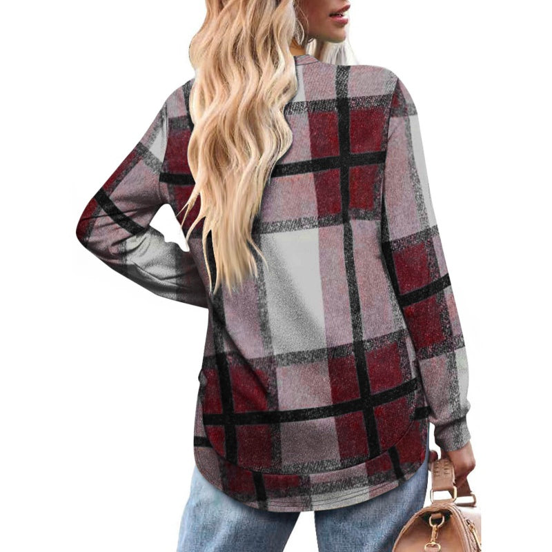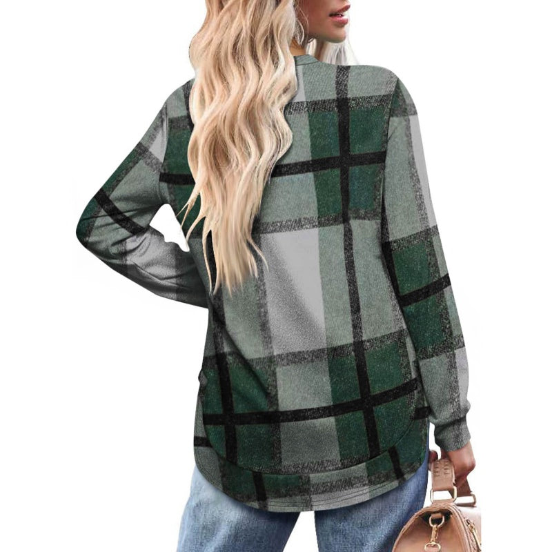 Bluză casual cu mâneci lungi și imprimeu în carouri pentru femei