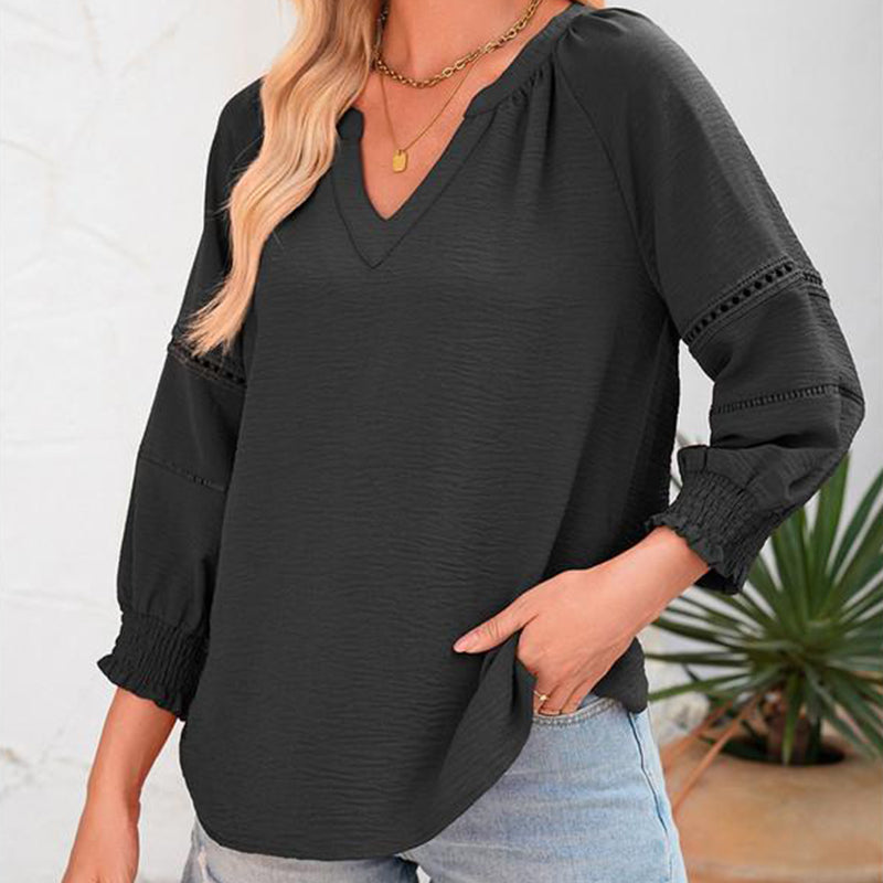 Bluză casual pentru femei, cu decolteu în V și mâneci largi