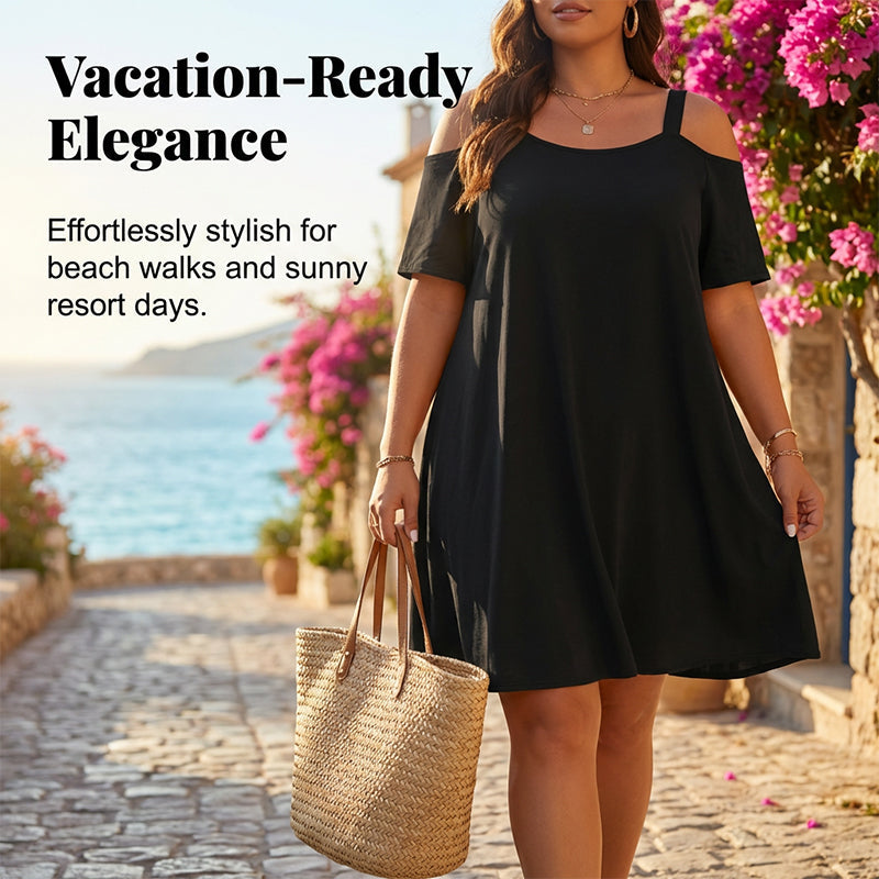 ELEGANȚĂ GATA DE VACANȚĂ - Împachetează ușor și arată uimitor. Această rochie cu umeri decupați este partenerul tău de călătorie perfect, oferindu-ți confort și un stil lejer pentru escapadele tropicale și weekendurile însorite.