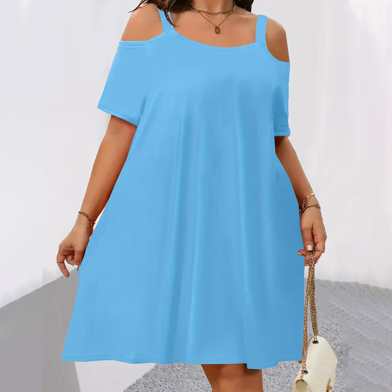 👗Rochie casual pentru femei, cu umeri decupați, în culori uni